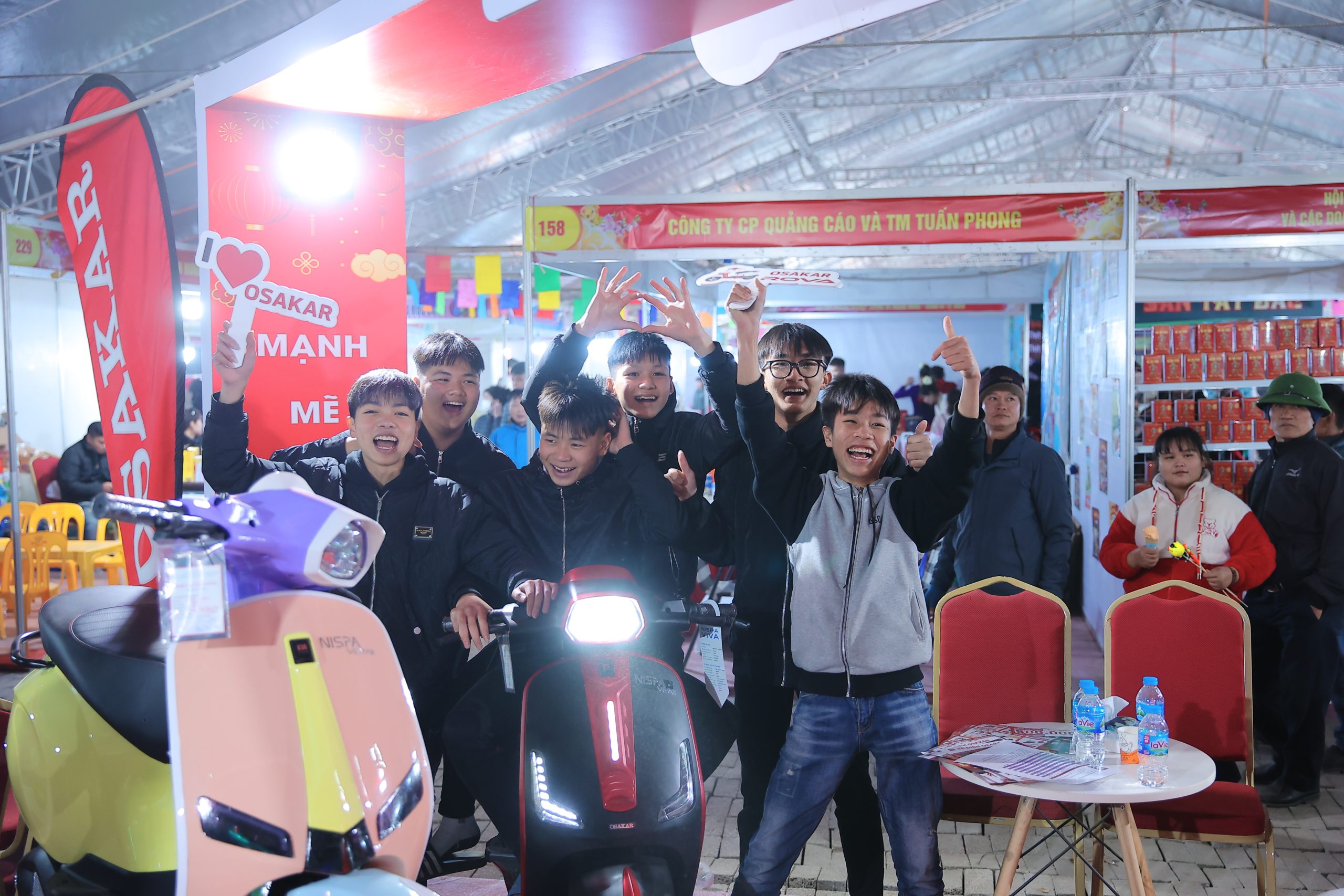 Nhiều khách hàng trẻ tuổi phấn khởi khi chụp ảnh lưu niệm cùng xe điện OSAKAR